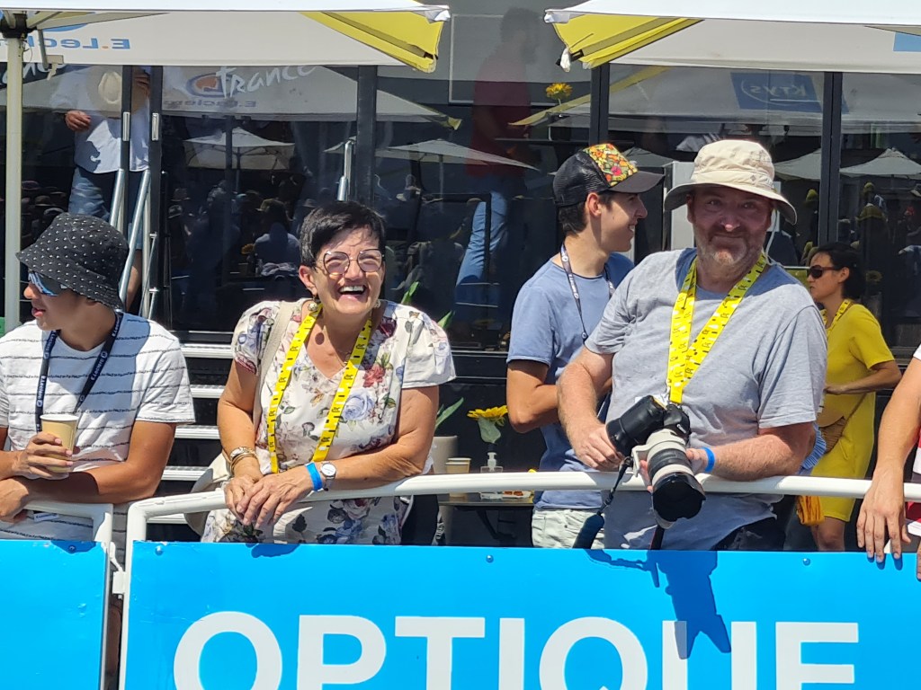 Une chose est sûre, certains élus, presque finalement désintéressés depuis le passage de la caravane et de la distribution des fameux « hoodies », n’ont rien vu de l’arrivée des coureurs qui, il faut leur accorder, sont passés comme des fusées. Cela ne les a pas empêchés de se précipiter dans les coulisses, au milieu des bus des équipes, là où l’accès leur était réservé, pour se faire photographier au milieu du peloton.